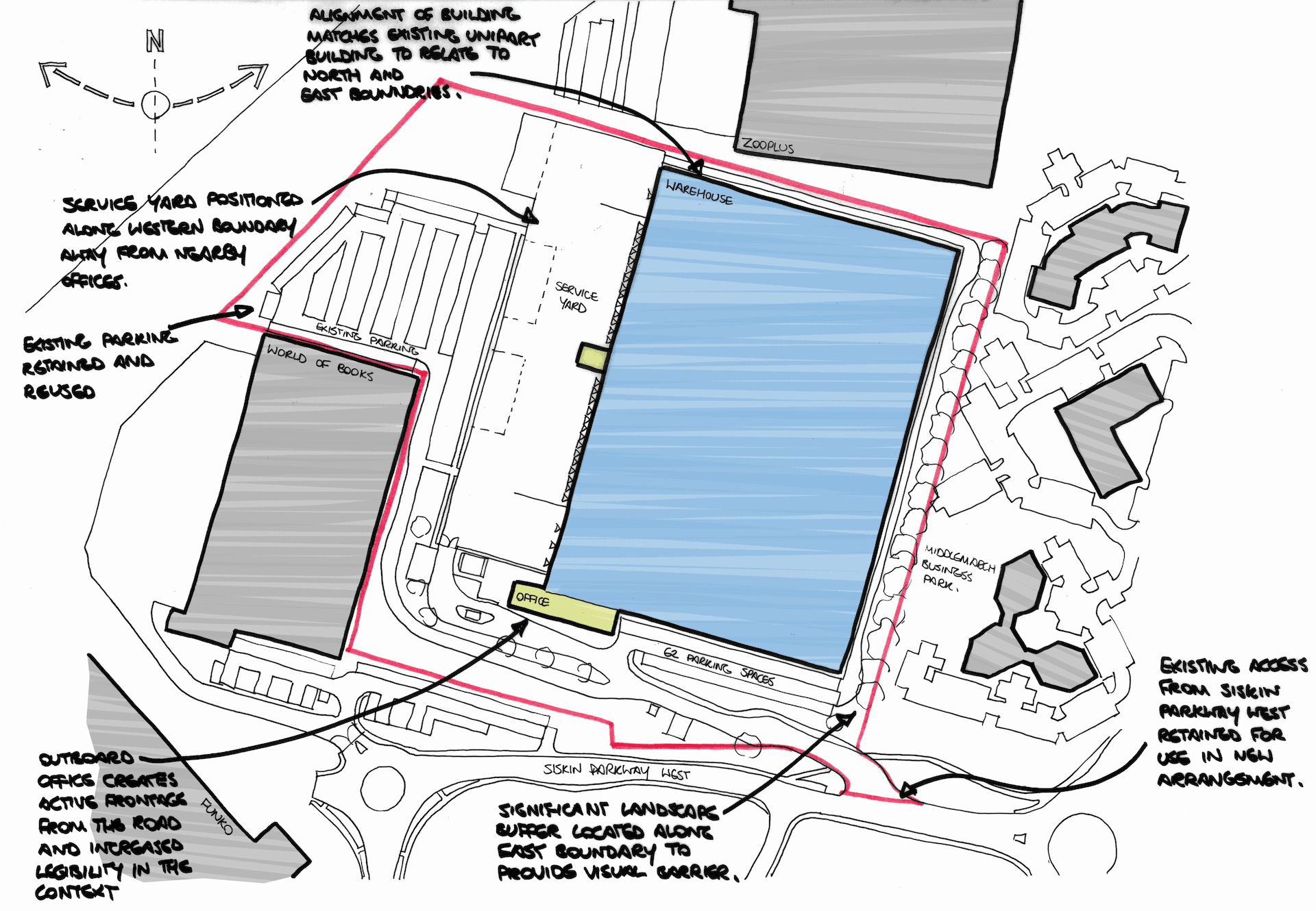 The proposed new building is located on a central site within the business park, currently occupied by a distribution depot for Unipart Group. This particular area is a long-established site for industrial and logistics facilities, identified as a major employment zone for the borough.