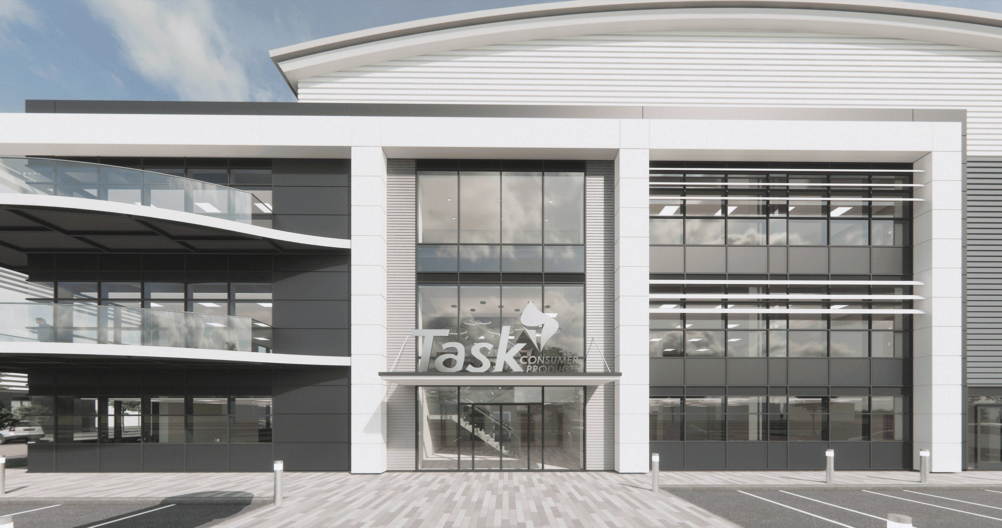 The redevelopment project for Task Consumer Products involves a significant expansion of their operations at Citygate Park in Wolverhampton. The scheme includes an 83,500 sqft extension to Task’s existing premises, as well as a new adjacent 125,000 sqft development. The project is designed to meet BREEAM Excellent standards, demonstrating a commitment to sustainability and energy-efficient design.