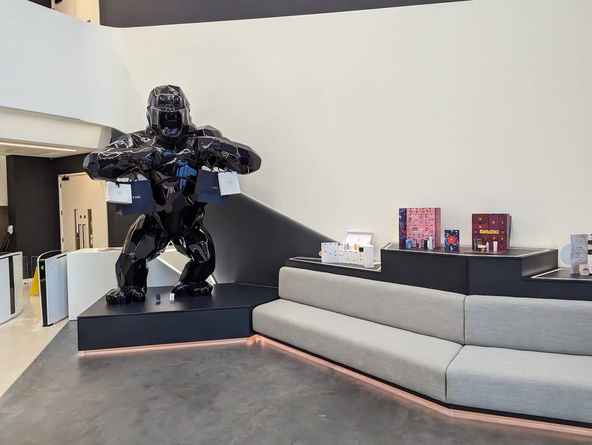 The reception now offers up a bespoke product, display and seating areas alongside the feature Artwork of “Richard Orlinski : Kong Spirit” and Pufferfish globe.